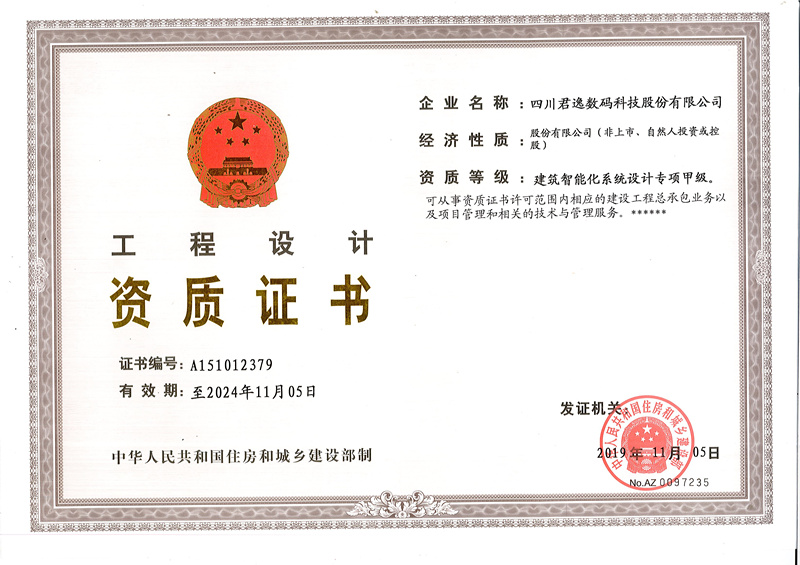 取得建筑智能化工程設(shè)計(jì)與實(shí)施貳級(jí)資質(zhì),入圍四川總行、四川建行指定安防工程商