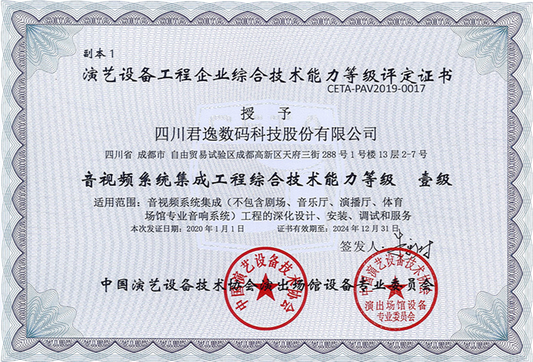 公司股份制改造,注冊(cè)資本5000萬元,取得建筑智能化工程設(shè)計(jì)與施工壹級(jí)資質(zhì),成立君逸企業(yè)技術(shù)中心獲評(píng)成都市企業(yè)技術(shù)中心