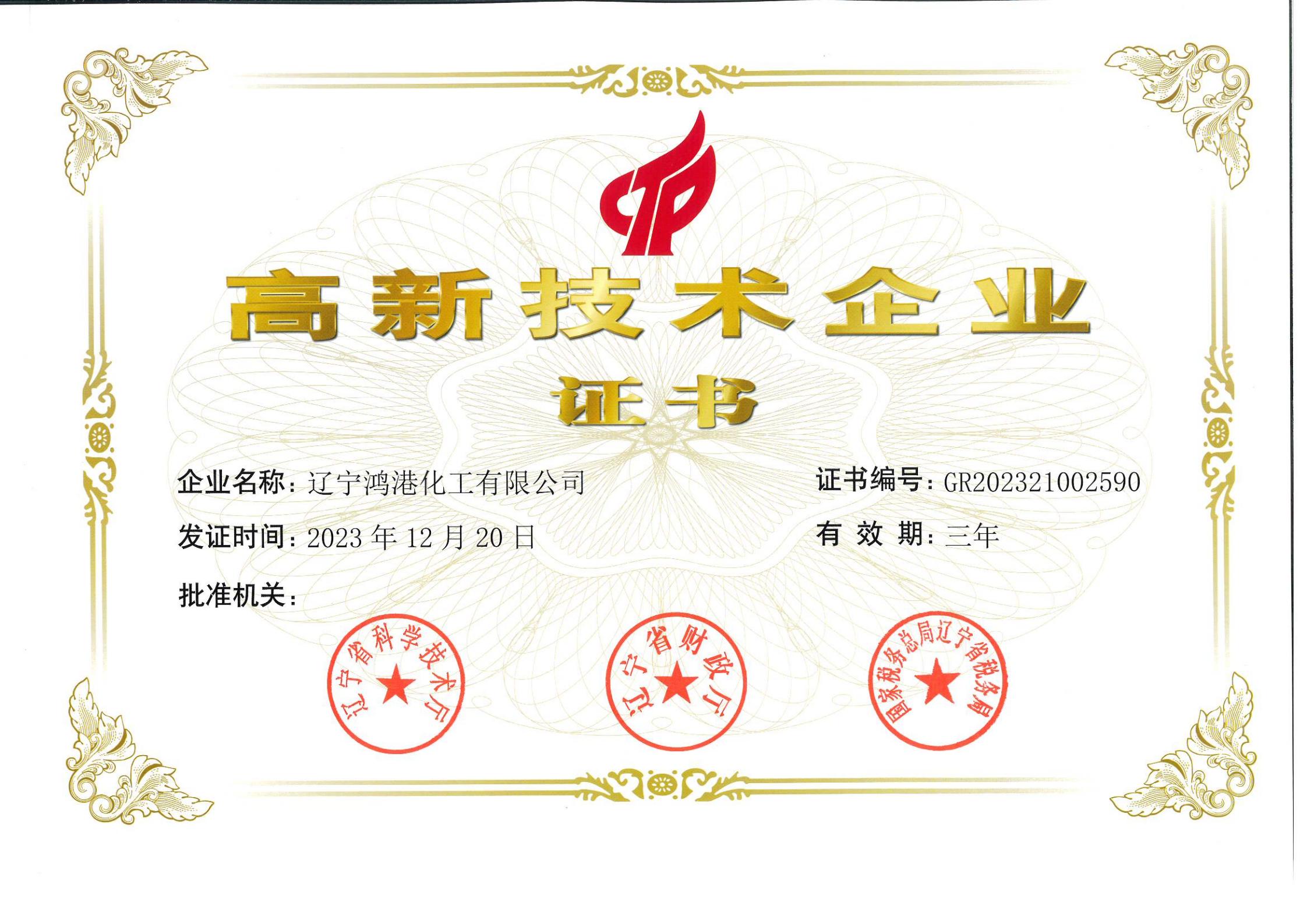 高新技術(shù)企業(yè)證書